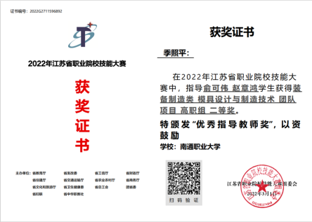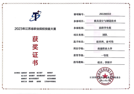 专业技能大赛中,员工先后获得全国职业院校模具数字化设计与制造工艺赛项团体二等奖、中华人民共和国第二届职业技能大赛塑料模具工程赛项优胜奖、江苏省职业院校模具设计与制造技术赛项一等奖、江苏省职业院校模具设计与制造技术赛项二等奖、江苏省职业院校模具设计与制造技术赛项三等奖等。